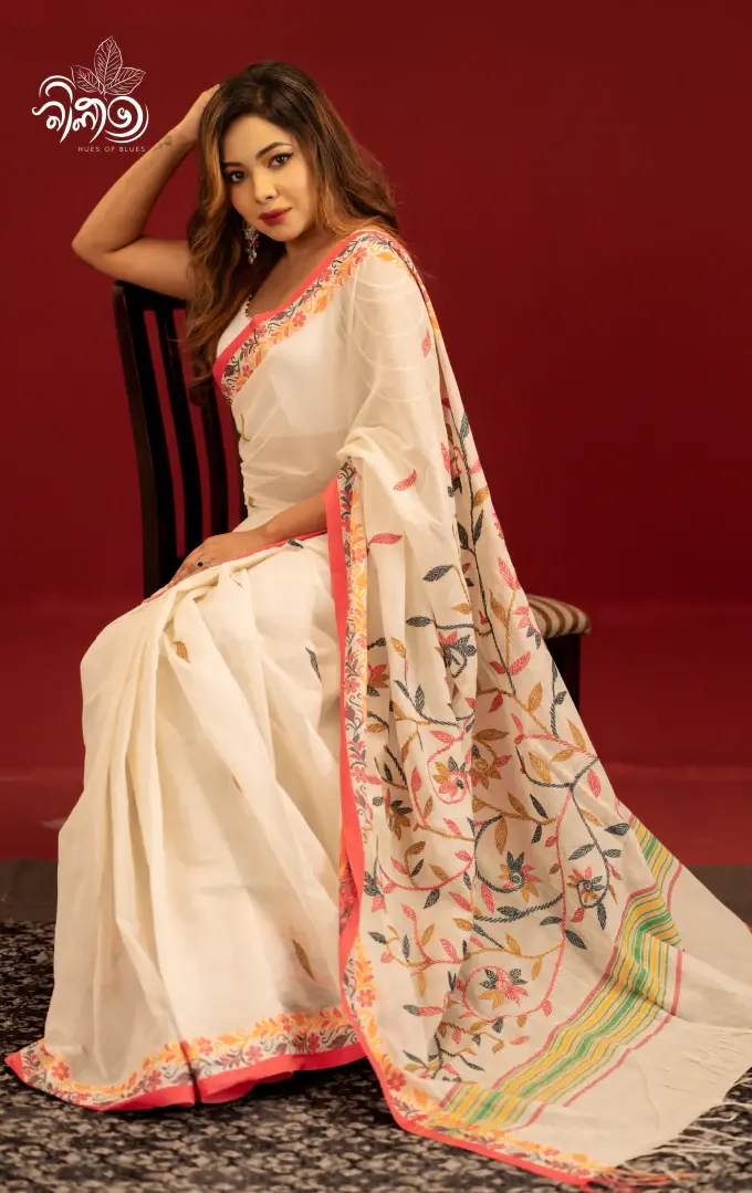 Pure Cotton Soft & Comfortable. Cotton kantha stitched saree with running blouse piece
